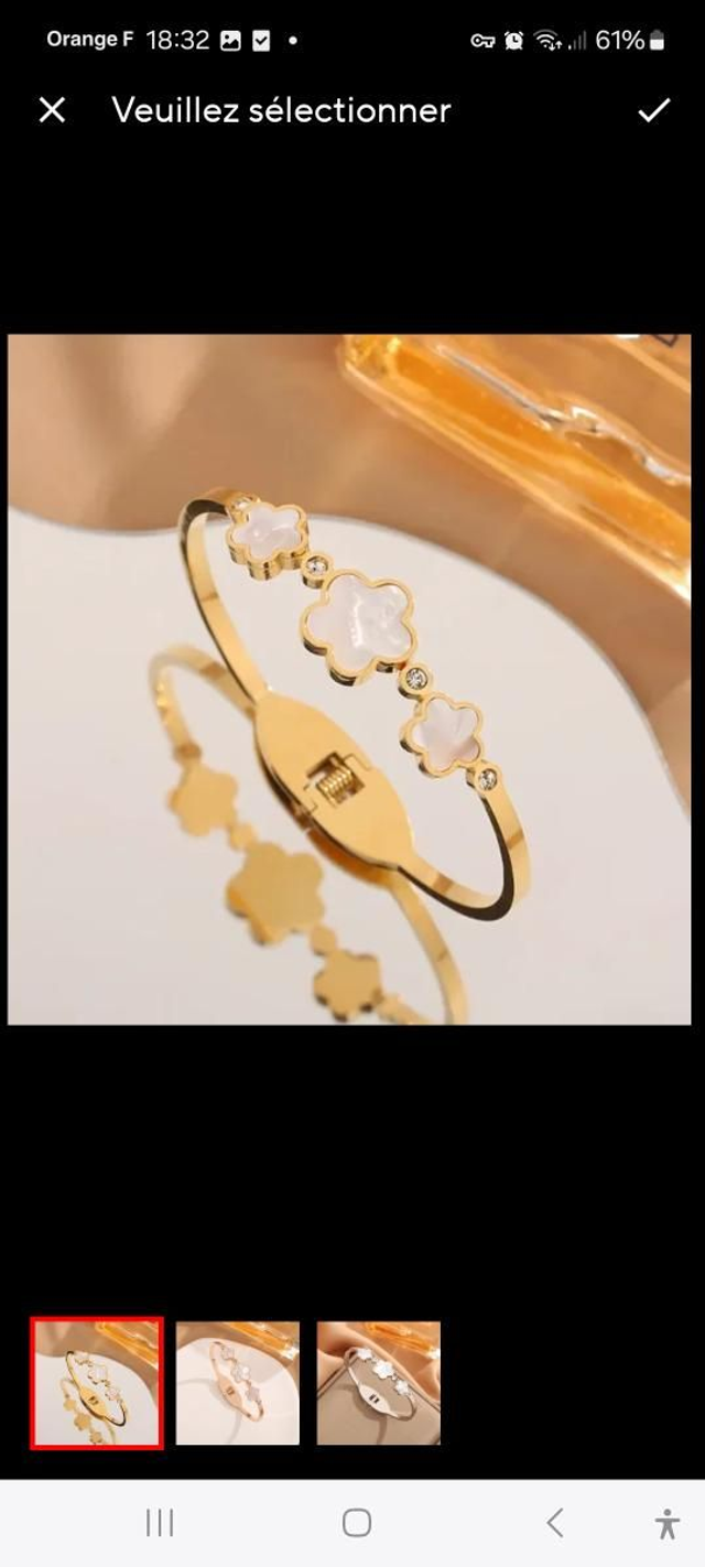 Bracelet acier inoxydable nacres ouverture frontale à ressort